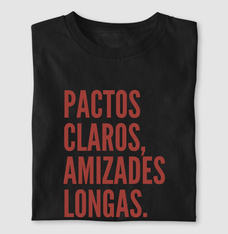 Amizades verdadeiras se constroem na base da sinceridade. A camiseta “PACTOS CLAROS, AMIZADES LONGAS” da bú traduz isso com estilo: direta, leve e cheia de significado. Uma peça que combina com quem valoriza laços reais e não abre mão de vestir autenticidade.